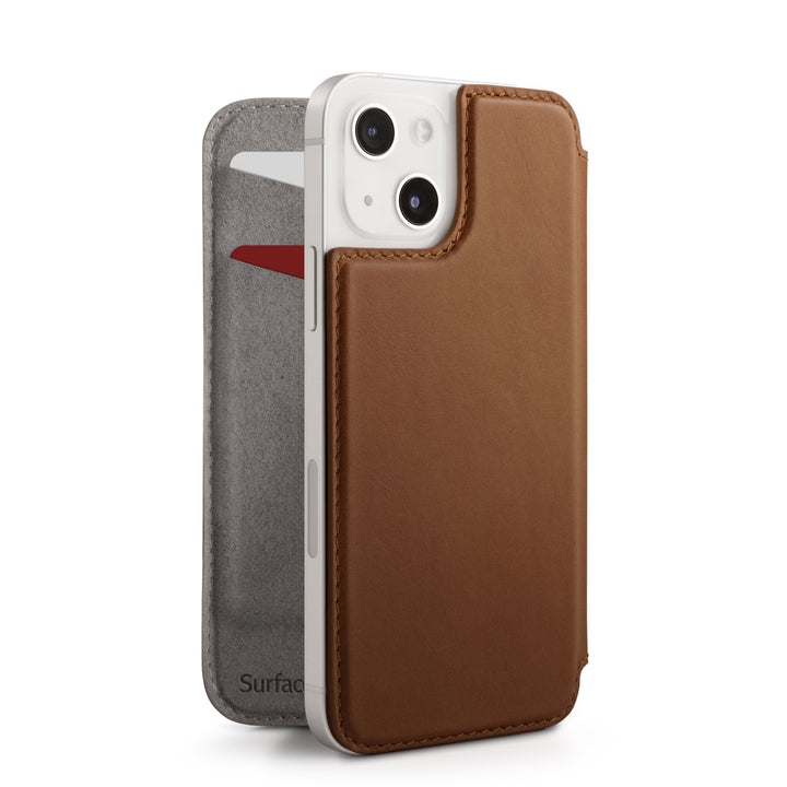 Feather light and razor thin, SurfacePad for iPhone is a beautifully slim leather cover designed to shield the front and back of your phone from scratches. Inside this Napa leather jacket are two cards slots for grab-and-go convenience. And yes, SurfacePad is fully MagSafe compatible! With slots on the inside front cover, you don’t have to remove SurfacePad to access your cards or charge your phone. SurfacePad is the cover of choice for those who prefer their iPhone in next to nothing.    Interested in SurfacePad for iPhone 14? Sign up below or from the product dropdown and we'll let you know...