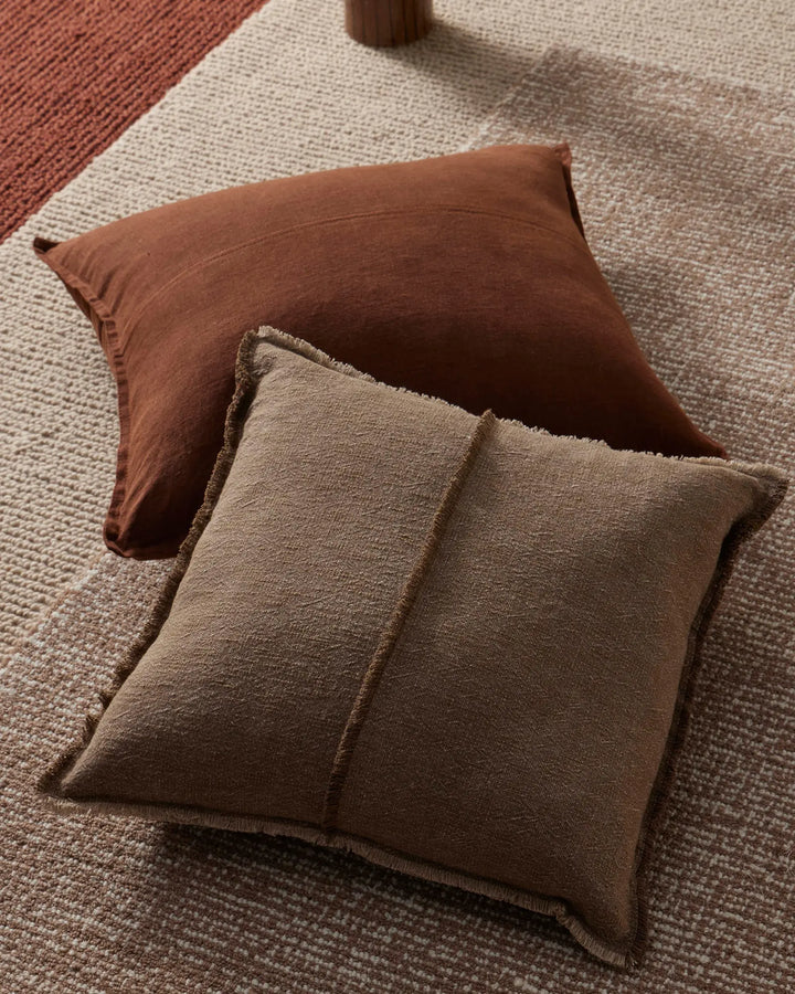 Quietly sophisticated, the Adela cushion is all about texture and thoughtful detail. Designed with intention, its subtle two-tone weave and organic textured surface offer a tactile finish that feels as good as it looks. The raw-edged fringe, featuring two interwoven colours, adds a refined point of interest without overpowering, bridging the gap between a plain and a textured design.