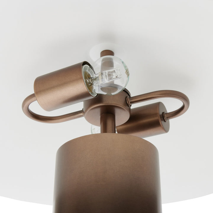 Our Aiko Table lamp is a timeless statement piece. With a simplistic design, dark bronze base & white metal peaked shade with a bronze cap, this modernist table lamp blends effortlessly with minimalistic spaces, showcasing its contemporary feel. Focusing on clean & simple form, the Aiko Table Lamp delivers on every level. Black textile cord, length 150 cm with line on/off switch. Uses 2 x E27 MAX 28W globes (globes not included).DIMENSIONS Height: 59 cm Diameter: 50 cm SPECIFICATIONS Basic Assembly Required - assembly instructions included & available to download Weight: 7 kg Material Composition: Iron 2 x E27 MAX...