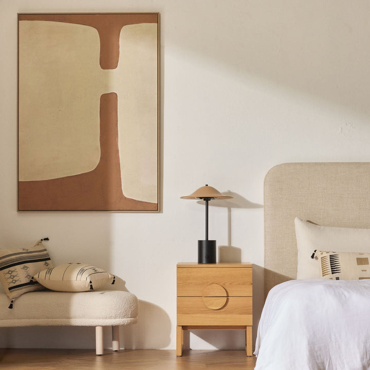Our Alma Wall Art exudes a sense of understated elegance. This brown & cream minimalist piece marries modern abstract elements with geometric precision. Hand embellished & crafted to embody the essence of wabi-sabi design, this neutral wall art adds a touch of serene charm to any room. Its subtle hues and minimalist aesthetic create a harmonious balance, & with its contrasting tones, seamlessly complements both modern and classic interiors. Complete with D-ring hangers on the reverse. Please refer to the hanging instructions provided to ensure correct installation and prevent damage to the fittings or artwork.