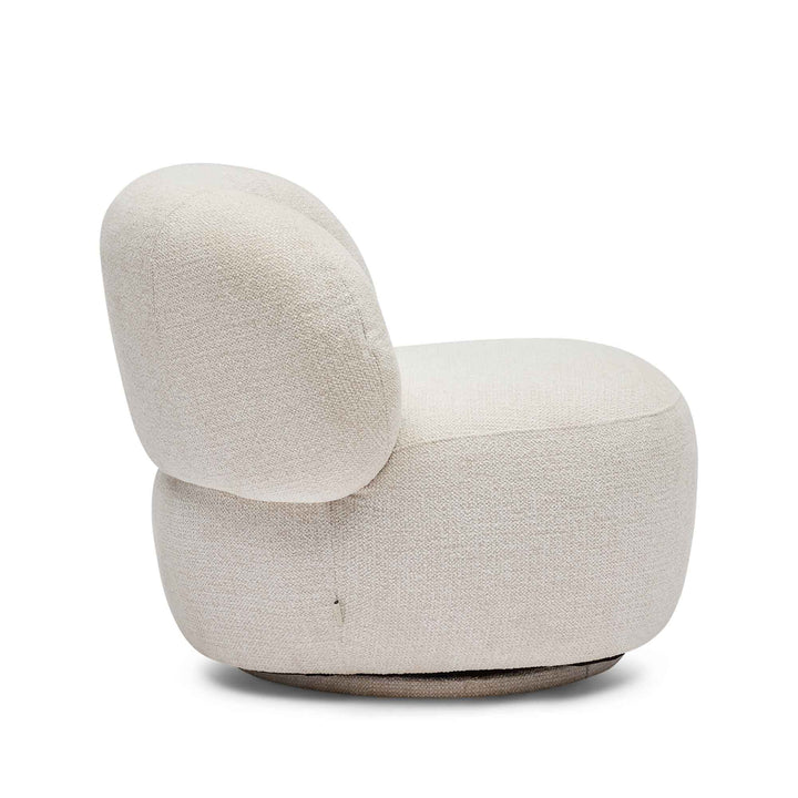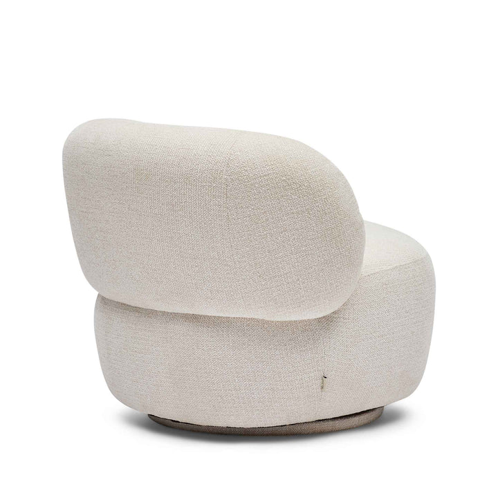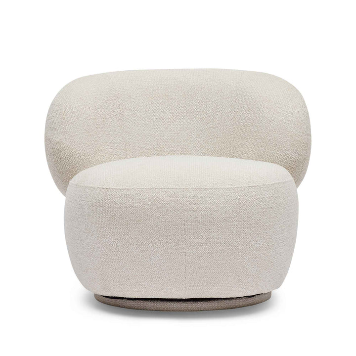 The Anya Swivel Chair combines modern aesthetics with exceptional comfort, featuring a deep, well-padded seat and a luxuriously cushioned curved back designed for effortless relaxation. Its elegant silhouette is complemented by a smooth 360-degree swivel base, providing both flexibility and seamless movement. Upholstered in a textured cool beige fabric, the chair offers plush comfort through foam and fibre padding, supported by webbed suspension and a sturdy timber frame for lasting durability. Perfectly suited for both residential and boutique commercial spaces where style and practicality converge. DIMENSIONS Height: 68 cm Length: 85 cm Width/Depth: 68 cm SPECIFICATIONS Fully Assembled Weight: 22...