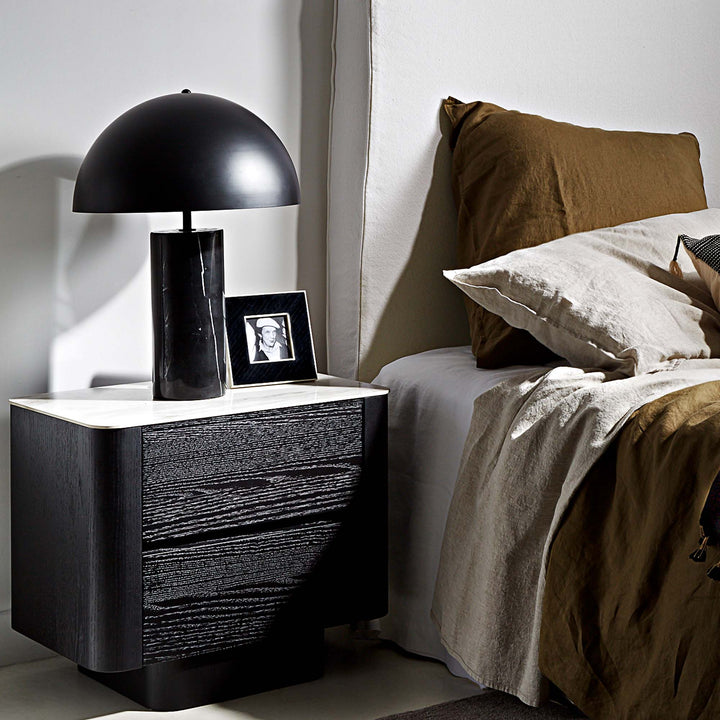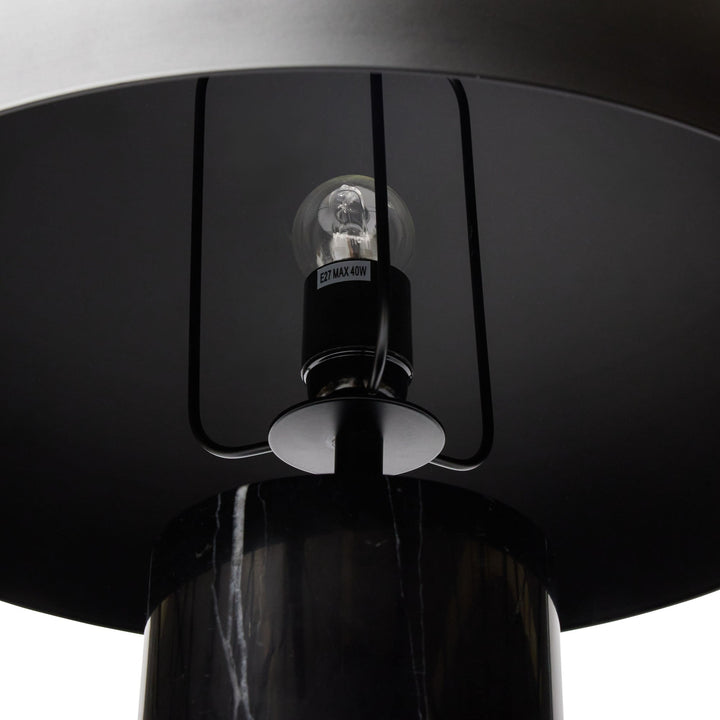 Sleek polished black marble base and black powder coated iron for the shade, this Aphra Black Marble Table Lamp is a stand out. Focusing on clean, simple and sculptural forms, this black marble table lamp delivers on every front. Incandescent globe E27 60W max:LED 4~16W (globe not included).