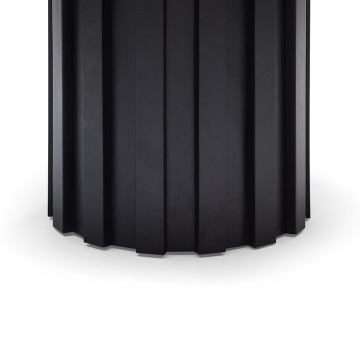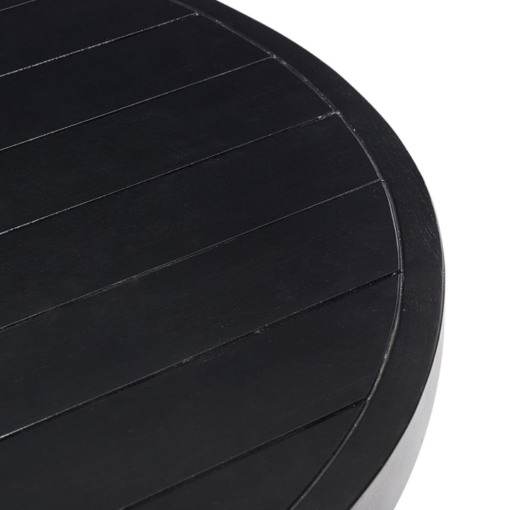 Ari Outdoor Dining Table in black stain teak. Featuring a slatted round tabletop & fluted base, the Ari table combines modern design with sturdy durability. As with all outdoor furniture we recommend using a cover when not in use to ensure the longevity of your product.