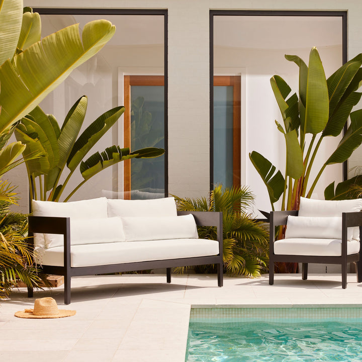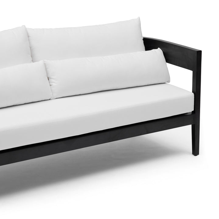The Avoca Outdoor Sofa in Black Painted Teak is a beautiful, low maintenance outdoor teak furniture sofa. With superior durability and stunning detail, this sofa in black painted teak with white cushions is the perfect addition to your outdoor space. Whether entertaining guests or just relaxing at home, uplift the way you lounge in your backyard or patio space. For more information about this range, please refer to the Specifications and see the 'Product Care Instructions' available in Product Downloads. This Sofa comes with a protective outdoor furniture cover, which should be used when not in use to help maintain its condition and extend its lifespan.