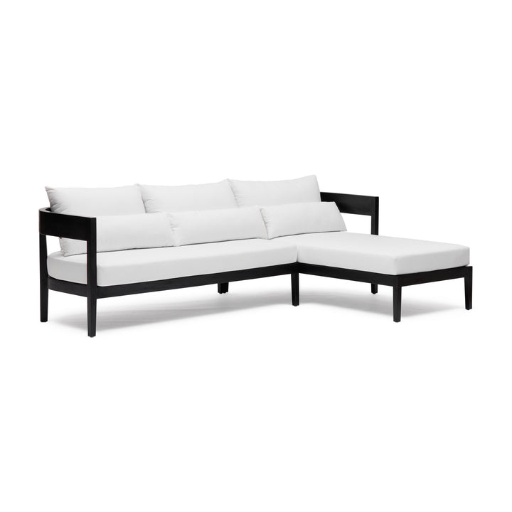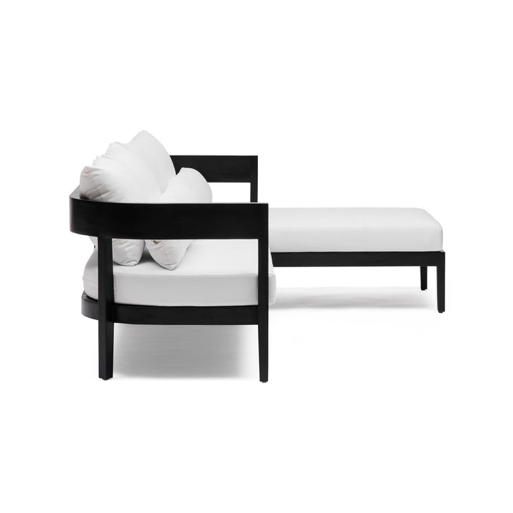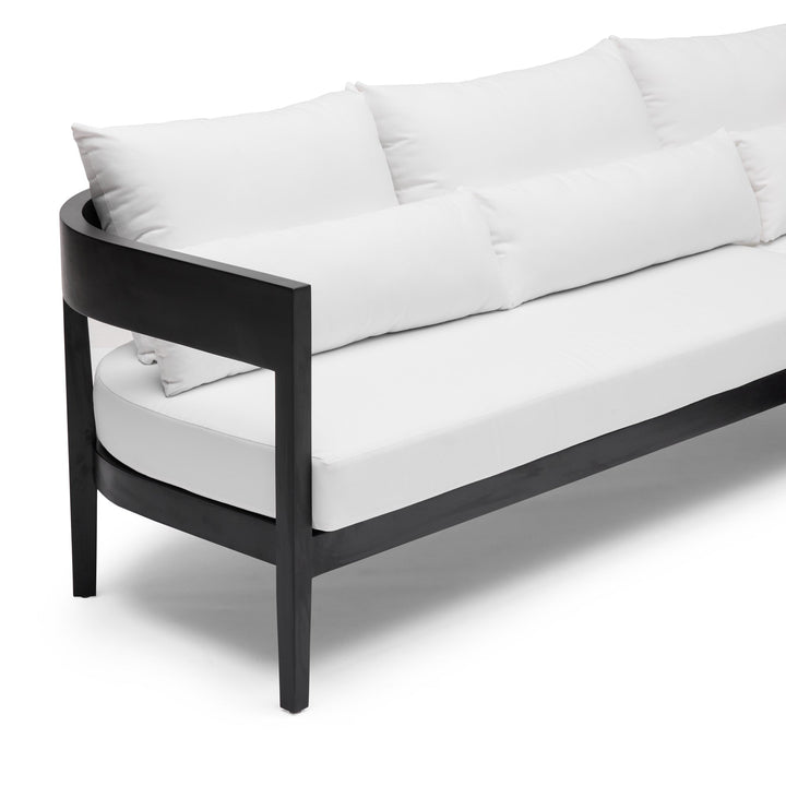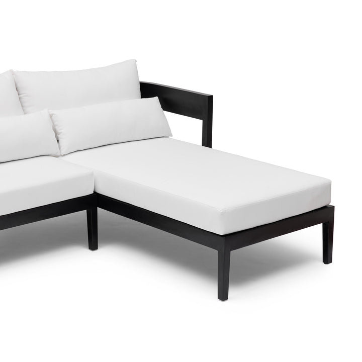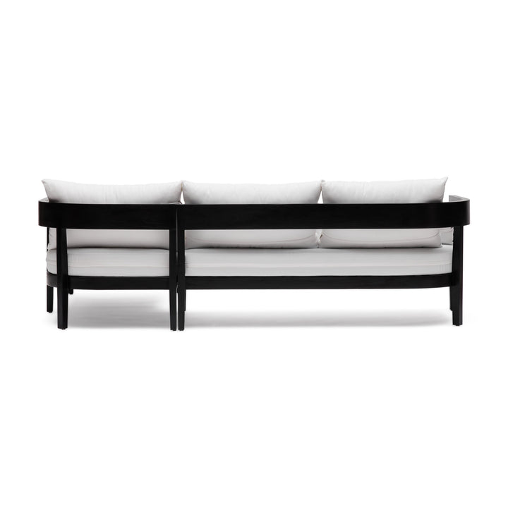 The Avoca Outdoor Sofa with Right Chaise is a beautiful, low maintenance outdoor sofa. With superior durability and stunning detail, this black stained teak sofa with white cushions is the perfect addition to your outdoor space. Whether entertaining guests or just relaxing at home, uplift the way you lounge in your backyard or patio space. For more information about this range, please refer to the Specifications and see the 'Product Care Instructions' available in Product Downloads. This Sofa comes with protective outdoor furniture covers, which should be used when not in use to help maintain its condition and extend its lifespan.