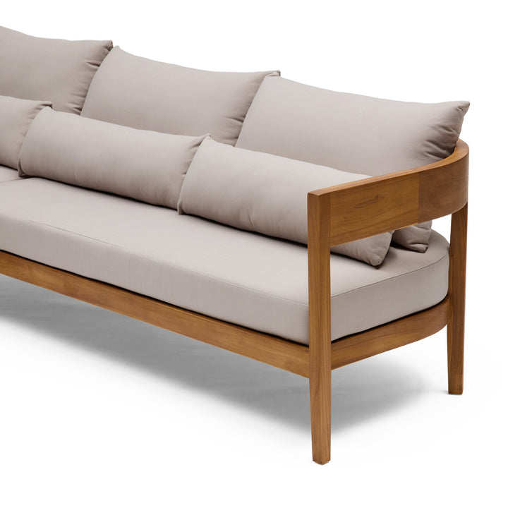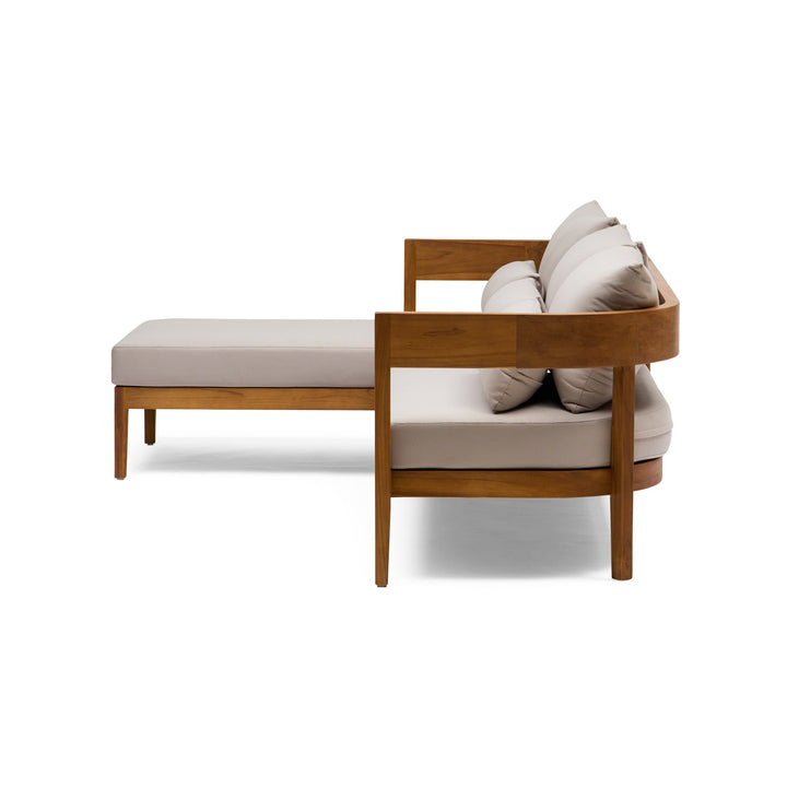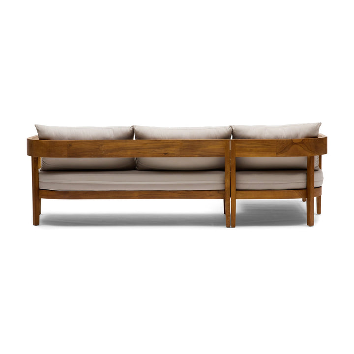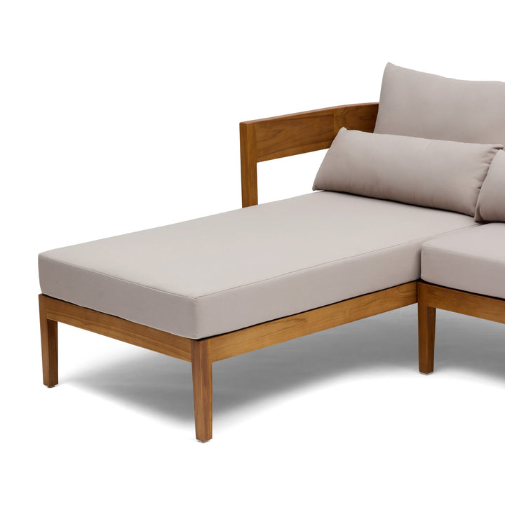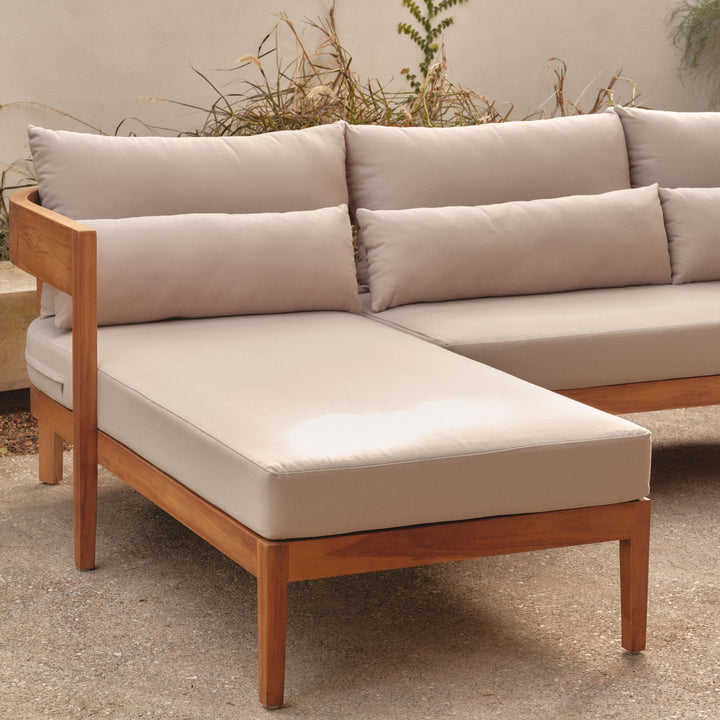 The Avoca Outdoor Sofa with Left Chaise is a beautiful, low maintenance outdoor sofa. With superior durability and stunning detail, this natural teak sofa with stone colour cushions is the perfect addition to your outdoor space. Whether entertaining guests or just relaxing at home, uplift the way you lounge in your backyard or patio space. For more information about this range, please refer to the Specifications and see the 'Product Care Instructions' available in Product Downloads. This Sofa comes with protective outdoor furniture covers, which should be used when not in use to help maintain its condition and extend its lifespan.