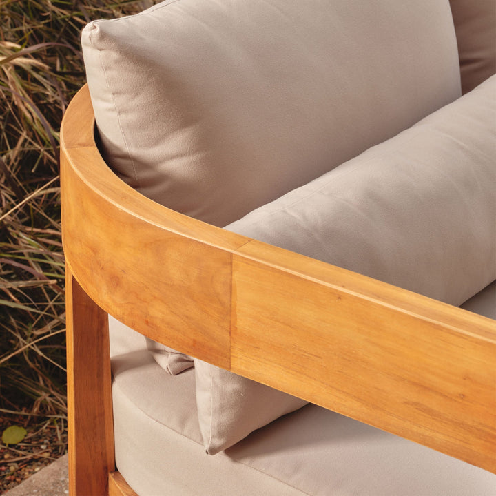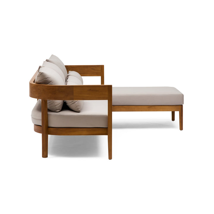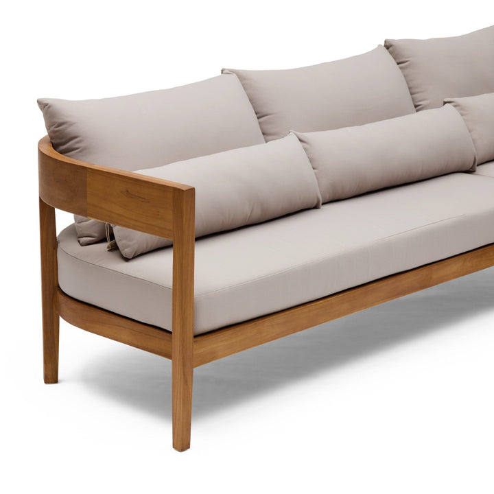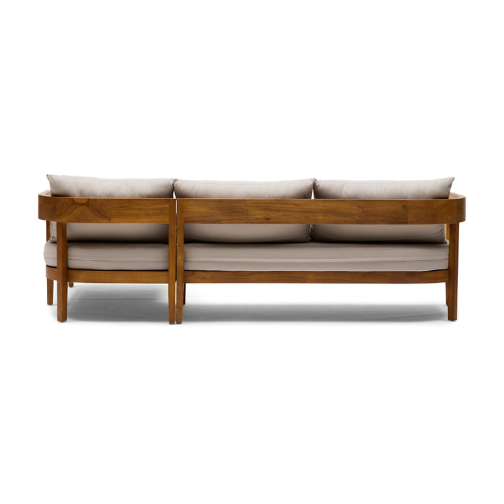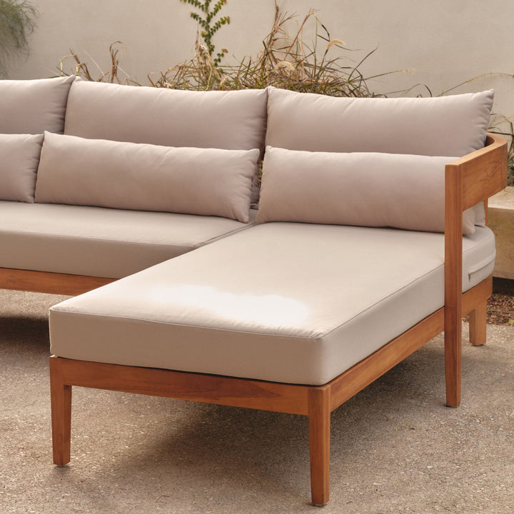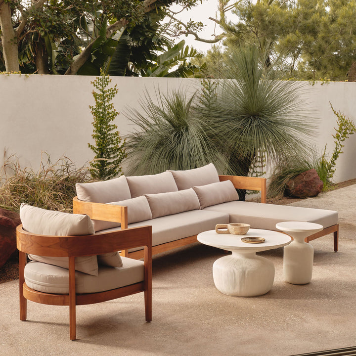The Avoca Outdoor Sofa with Right Chaise is a beautiful, low maintenance outdoor sofa. With superior durability and stunning detail, this natural teak sofa with stone colour cushions is the perfect addition to your outdoor space. Whether entertaining guests or just relaxing at home, uplift the way you lounge in your backyard or patio space. For more information about this range, please refer to the Specifications and see the 'Product Care Instructions' available in Product Downloads. This Sofa comes with protective outdoor furniture covers, which should be used when not in use to help maintain its condition and extend its lifespan.