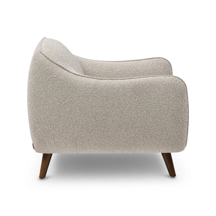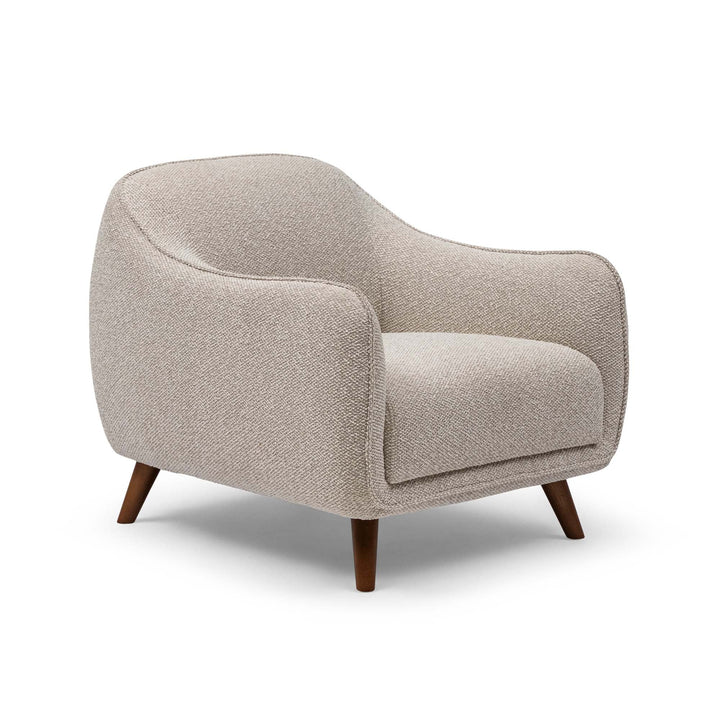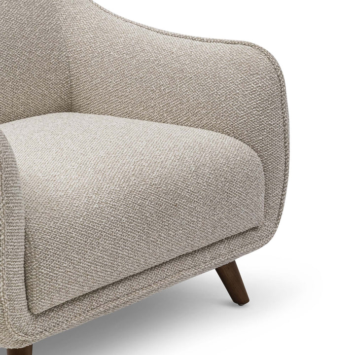The Bauer Occasional Chair combines modern simplicity with timeless elegance, featuring a deep seat cushion, supportive padded arms, and clean lines. Upholstered in a fog-coloured textured weave, it offers both comfort and sophistication, and a solid structure for everyday use. Effortlessly stylish yet invitingly comfortable, the Bauer is an elegant statement piece for any space.