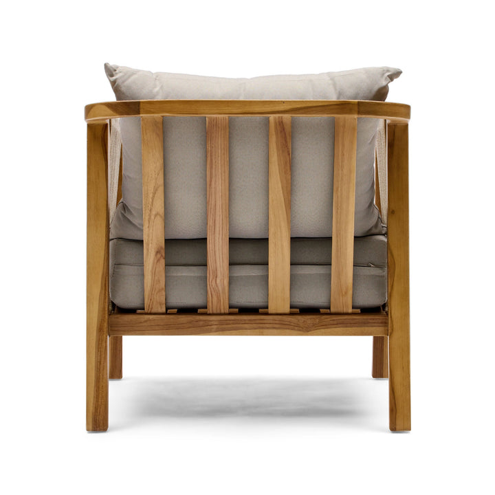 Where comfort meets sophistication, the Bronte Outdoor Chair redefines relaxed luxury for the outdoors. Crafted from solid natural teak and intricately handwoven olefin rope, each piece balances contemporary design with timeless appeal. Deep seats with fast-dry foam and soft ivory dune olefin cushions provide lasting comfort and resilience against the elements. The sturdy teak frame and high woven backrest lend a sculptural presence, while premium materials ensure stability, support, and enduring beauty. Designed for both poolside lounging and tranquil outdoor entertaining, the Bronte range brings effortless elegance to any outdoor retreat.