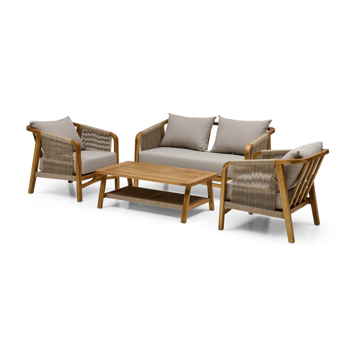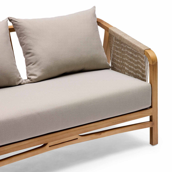 Where comfort meets sophistication, the Bronte Outdoor Sofa redefines relaxed luxury for the outdoors. Crafted from solid natural teak and intricately handwoven olefin rope, each piece balances contemporary design with timeless appeal. Deep seats with fast-dry foam and soft ivory dune olefin cushions provide lasting comfort and resilience against the elements. The sturdy teak frame and high woven backrest lend a sculptural presence, while premium materials ensure stability, support, and enduring beauty. Designed for both poolside lounging and tranquil outdoor entertaining, the Bronte range brings effortless elegance to any outdoor retreat.