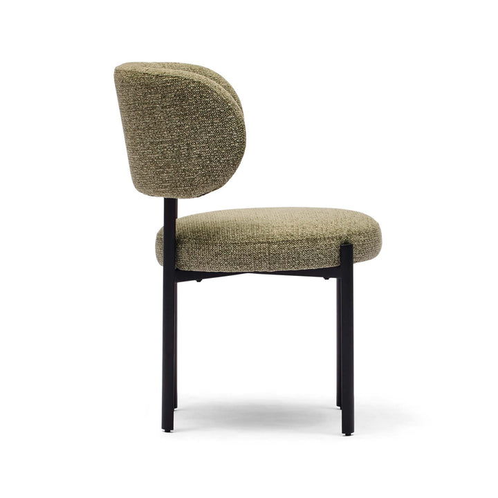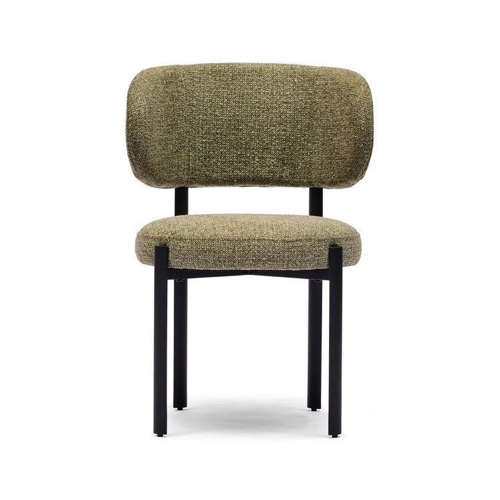 The Caden Dining Chair blends beauty and comfort, making it a perfect choice for any contemporary dining space. Its broad, curved backrest and well-cushioned seat provide exceptional support, while the textured weave upholstery in forest green adds warmth and sophistication. The sleek, powder-coated black metal frame creates a striking contrast, enhancing its modern appeal. With its minimalist design, the Caden effortlessly complements both new and existing dining tables.