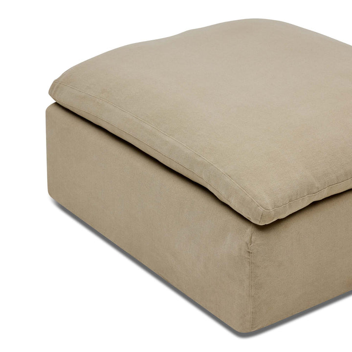 The Cape Ottoman is a versatile addition to the Cape Modular Sofa, offering extra seating, a footrest, or the option to create a left or right chaise. Featuring a feather and foam-filled cushion, a solid timber frame, and a serpentine spring base, it provides the perfect blend of softness and support. Upholstered in durable Warm Stone coloured fabric with a fully removable cover for easy cleaning, it’s designed for effortless adaptability in any space.