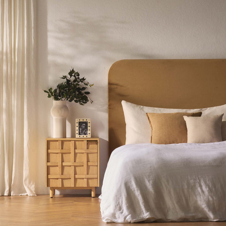 The Celine Bedhead in Sand is a classic style bedhead with softly curved edges. This beautiful double size bedhead is upholstered in a plush sand coloured velvet. Cushioned for comfort, it will add a contemporary and luxurious flair to your room. This bedhead will suit a standard double size bed. Wall mounts/brackets are included.