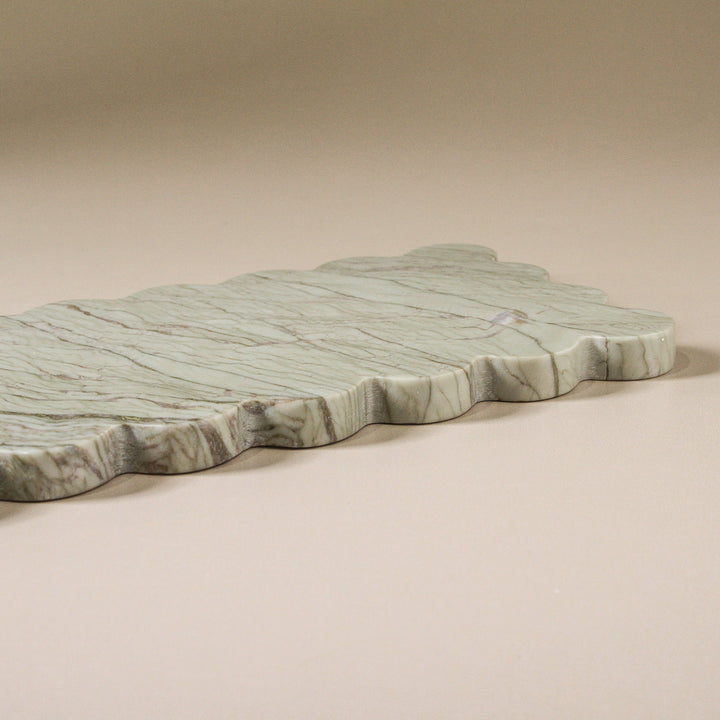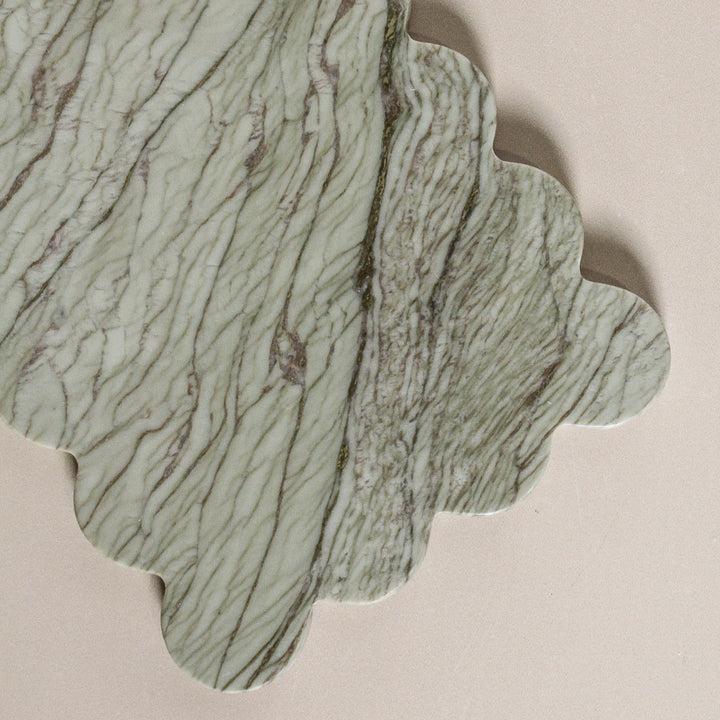 The Chloe Cheeseboard is a celebration of artisanal craft and natural beauty, designed for those who appreciate subtle elegance in everyday moments. This flat, rectangular marble board features gently scalloped edges that soften its silhouette, offering a tactile and elevated platform for serving cheese, charcuterie, or styling your tabletop. Available in three dreamy pastel tones—Mint, Pink Lagoon, and Bruno Pink—each cheeseboard reveals unique veining and colour variation, ensuring a truly bespoke feel. Handcrafted from solid marble, Chloe combines natural materials with refined design, fitting effortlessly into curated interiors inspired by calm, organic aesthetics. Whether hosting a relaxed gathering or adding...