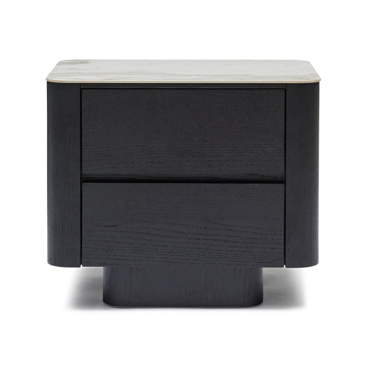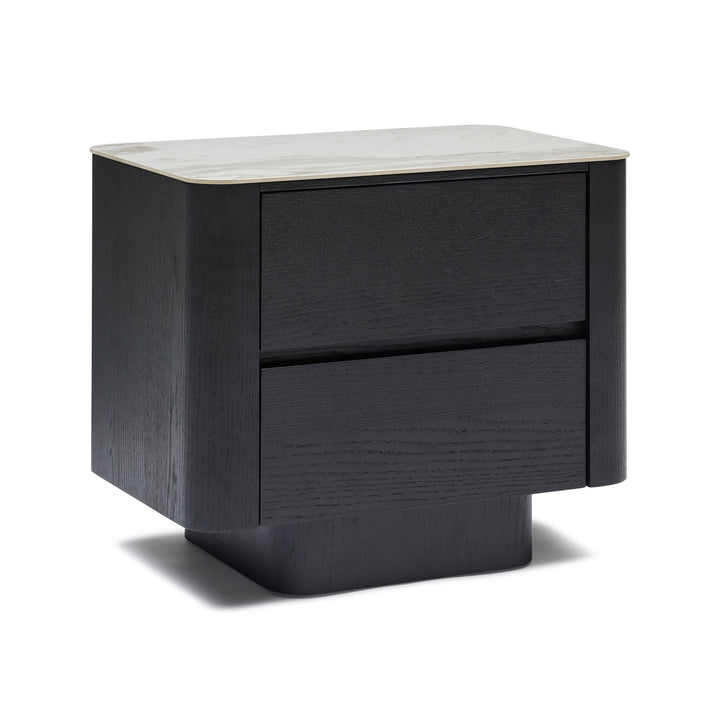 The Clio Black Bedside with a white ceramic top is a sophisticated & versatile bedside table. The Clio features a black oak veneer, jazz white ceramic top with a marble effect and 2 drawers with silent drawer glides. This popular and stylish bedside table will add sophistication and style to any bedroom setting.DIMENSIONS Height: 50 cm Length: 59 cm Width/Depth: 40 cm SPECIFICATIONS Fully Assembled Weight: 30kg Oak Veneer White Ceramic top with marble effect Inside of drawer is Melamine Please see our Care Instructions below and if in doubt, always seek the advice of a professional.