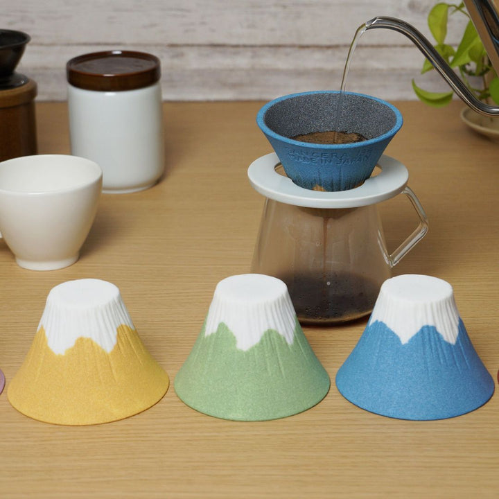 This set includes the Mount Fuji-shaped filter, a dedicated porcelain base, and a receiving tray, all designed to fit cups and servers with a 6.9–11.3 cm diameter. No paper or cloth filters are required—just pour in coarse to medium-ground coffee and enjoy. The filter is perfect for brewing 1 to 4 cups of coffee (120ml per cup) and comes in six vibrant colours, each symbolising a unique blessing, making it an ideal gift for coffee lovers or those who appreciate Japanese culture.