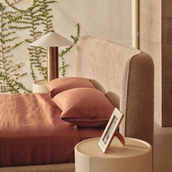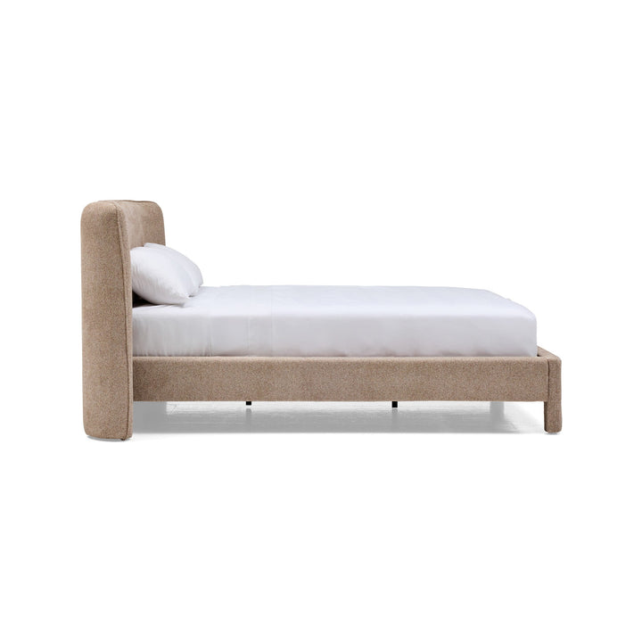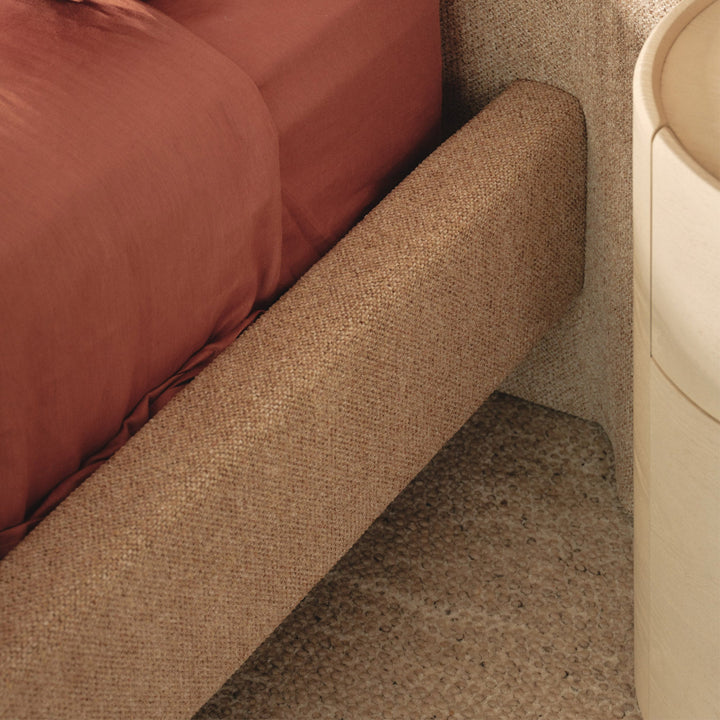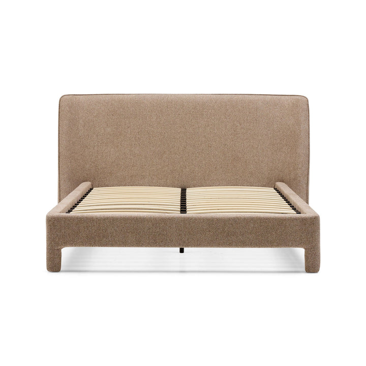 The Dalia Queen Bed brings a perfect balance of style and strength to your bedroom, featuring a clean-lined frame and a generously proportioned headboard with softly curved wings, upholstered in a rich mocha textured fabric. Its warm tones and simple silhouette create a relaxed yet refined atmosphere, while the matching upholstered frame and feet add a seamless, tailored finish. Built for lasting durability and comfort, this bed offers a sturdy foundation for restful nights and an elegant focal point for any modern space.