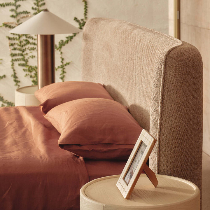 Elevate your bedroom with the Dalia Queen Bedhead, featuring a generously proportioned headboard with softly curved wings, upholstered in rich mocha textured fabric. Warm tones, clean lines, and plush upholstery create a relaxed yet refined focal point that pairs effortlessly with a variety of bedroom schemes.
