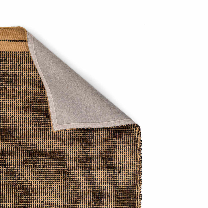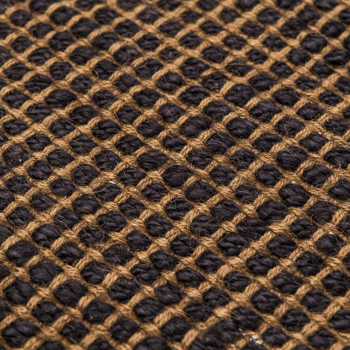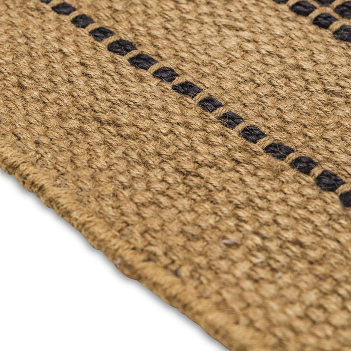 The Dota Rug is handwoven from 100% jute, showcasing a natural base accented with a striking black weave pattern. Rectangular and durable, it brings an organic, textured finish that adds warmth and depth to any space. Both stylish and functional, this high-quality rug is ideal for grounding your décor or defining different areas within a room. Handmade in India, the natural materials speak to its artisanal quality and enduring beauty. Durable & easy to maintain. Due the hand-made nature of these rugs, allow for a small size variance of up to 5cm in the size, each piece unique.