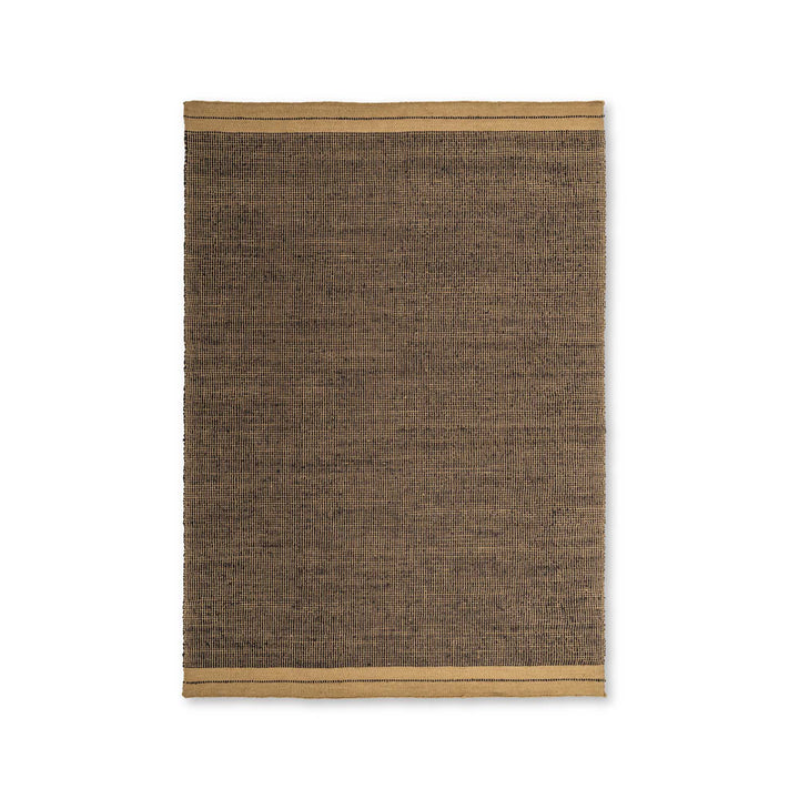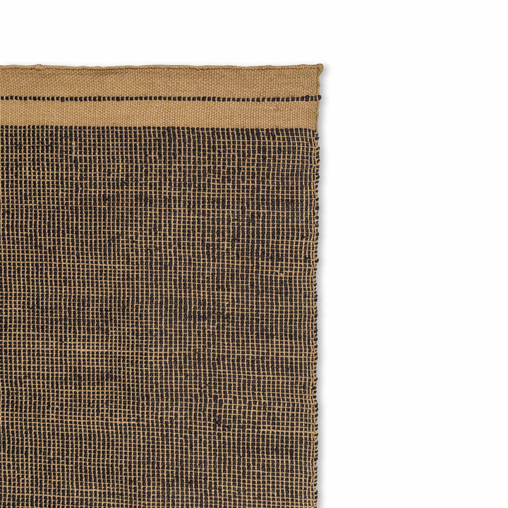 The Dota Rug is handwoven from 100% jute, showcasing a natural base accented with a striking black weave pattern. Rectangular and durable, it brings an organic, textured finish that adds warmth and depth to any space. Both stylish and functional, this high-quality rug is ideal for grounding your décor or defining different areas within a room. Handmade in India, the natural materials speak to its artisanal quality and enduring beauty. Durable & easy to maintain. Due the hand-made nature of these rugs, allow for a small size variance of up to 5cm in the size, each piece unique.