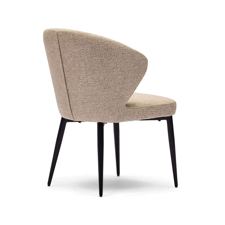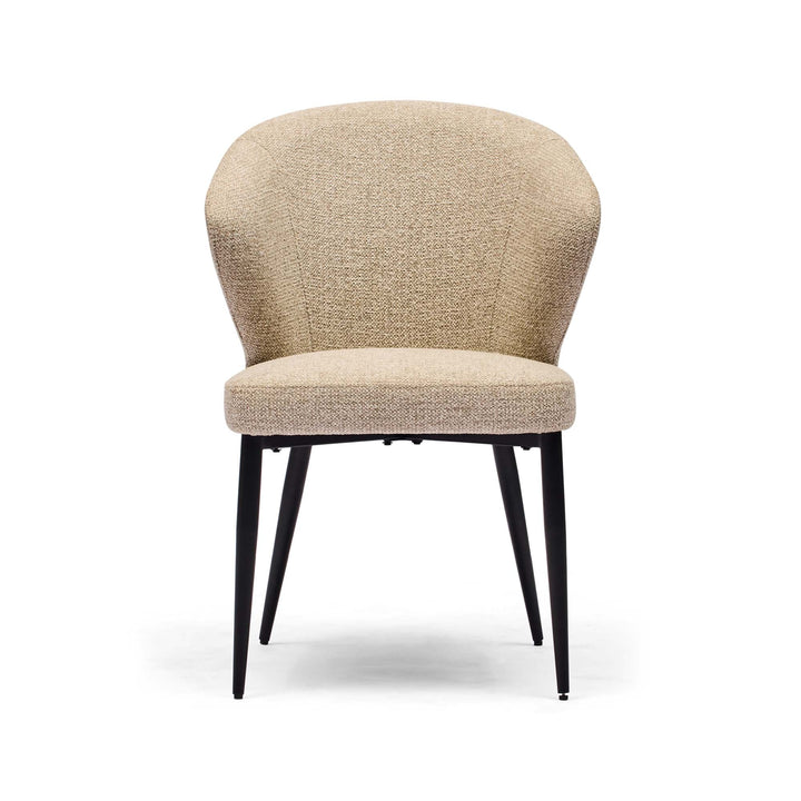 The Easton Dining Chair blends beauty and comfort, making it a perfect choice for any contemporary dining space. Its broad, supportive curved winged backrest and well-cushioned seat provide exceptional comfort, while the textured grey weave upholstery adds warmth and sophistication. The sleek powder coated black metal legs create a striking contrast, enhancing its modern appeal, while adjustable feet ensure stability on any surface. With its minimalist design, the Easton effortlessly complements both new and existing dining tables.DIMENSIONS Height: 80 cm Length: 62 cm Width/Depth: 56 cm SPECIFICATIONS Basic assembly required Weight: 5 kg Frame & Legs: Metal Materials/Composition: Fabric, plywood,...