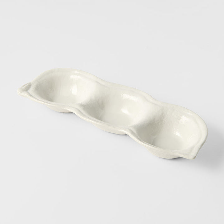 Edamame Triple Pod Dish 200ml Matte White Glaze