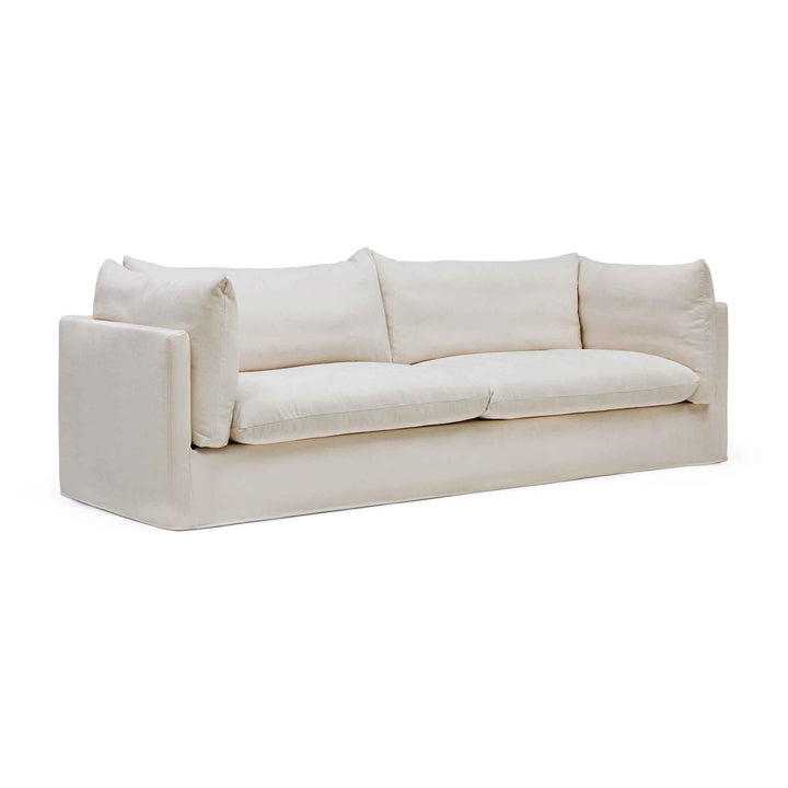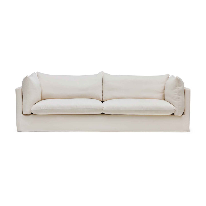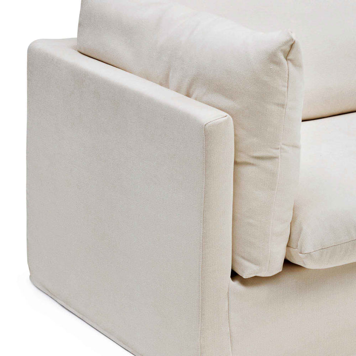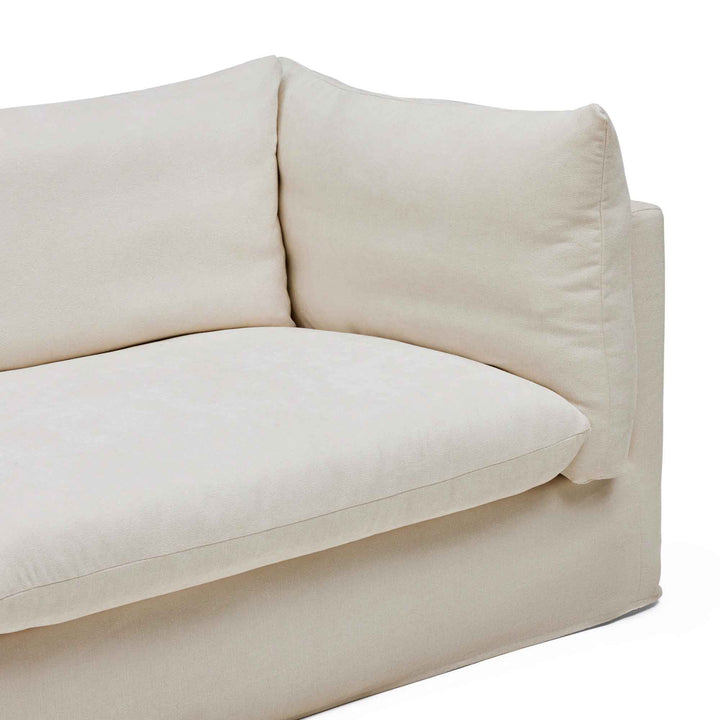 The Ella 4 Seat Sofa in warm ivory brings a European-inspired style that is soft, comfortable, and cosy. With relaxed arms & generous cushioning, it's the ultimate spot to unwind, whether for a movie night or catching up on the day. Casually elegant, it complements any home’s color palette beautifully. Pair it with the Mia Ottoman to transform the Ella Sofa into a chaise lounge, adding versatility to your seating options. With all covers fully removable for dry cleaning, this sofa is ideal for family and everyday use. Mia Ottoman not included; must be purchased separately.