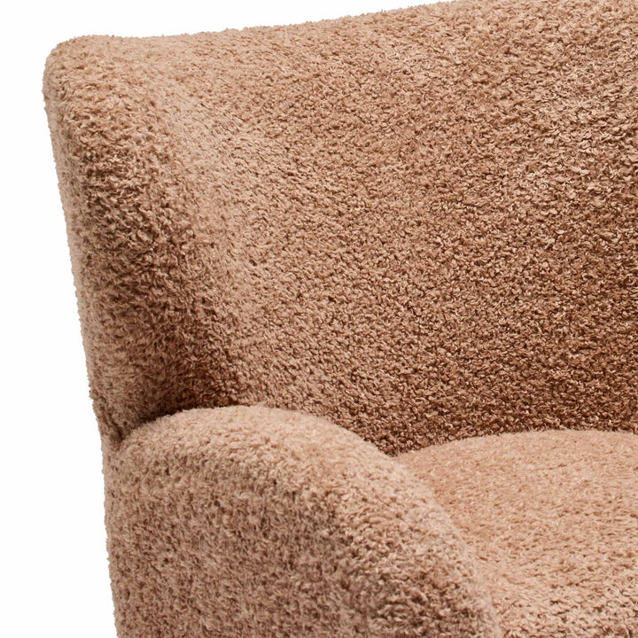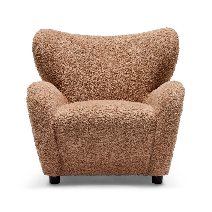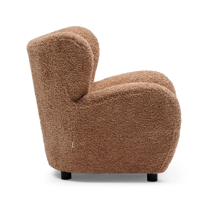 Introducing the Elle Occasional Chair. An accent chair that seamlessly blends form and function, this chair features slimline padded arms & a subtle wingback for added flair & maximum comfort. Upholstered in a luxe maple shearling, its solid structure and clean lines modernize the traditional style, while the soft supportive cushioning and beautiful rounded shape cradle your body as you relax. This charming armchair epitomizes sophistication and comfort in any setting.