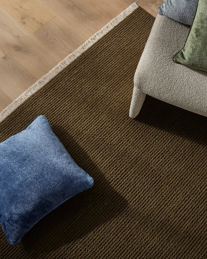 Fabien in Moss brings a grounded, organic edge to interiors. Its medium-toned forest green hue is deep yet versatile. It also features a cream fringe detail.