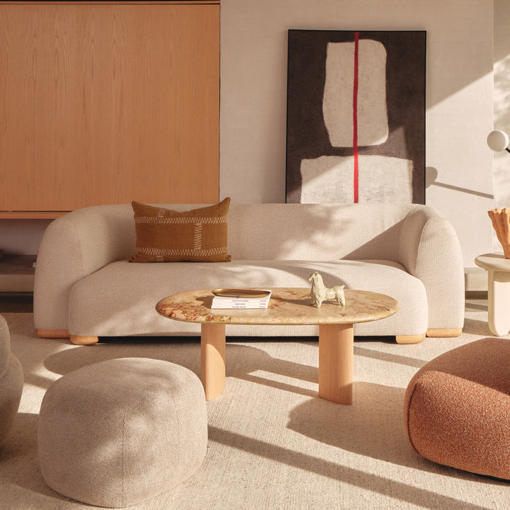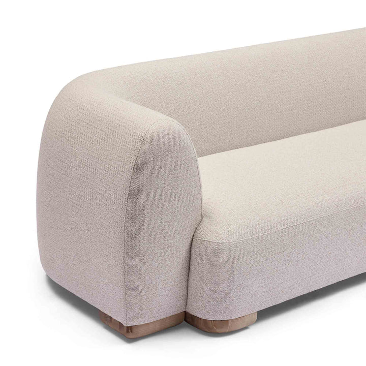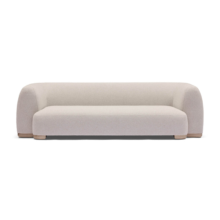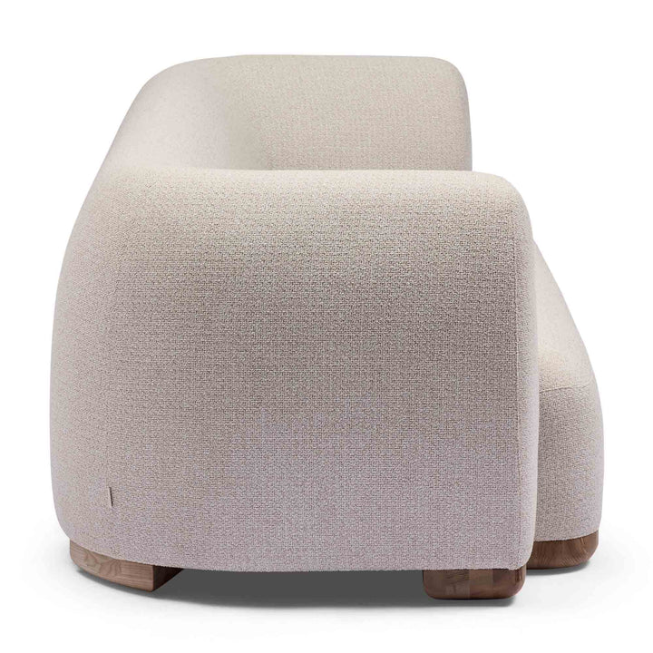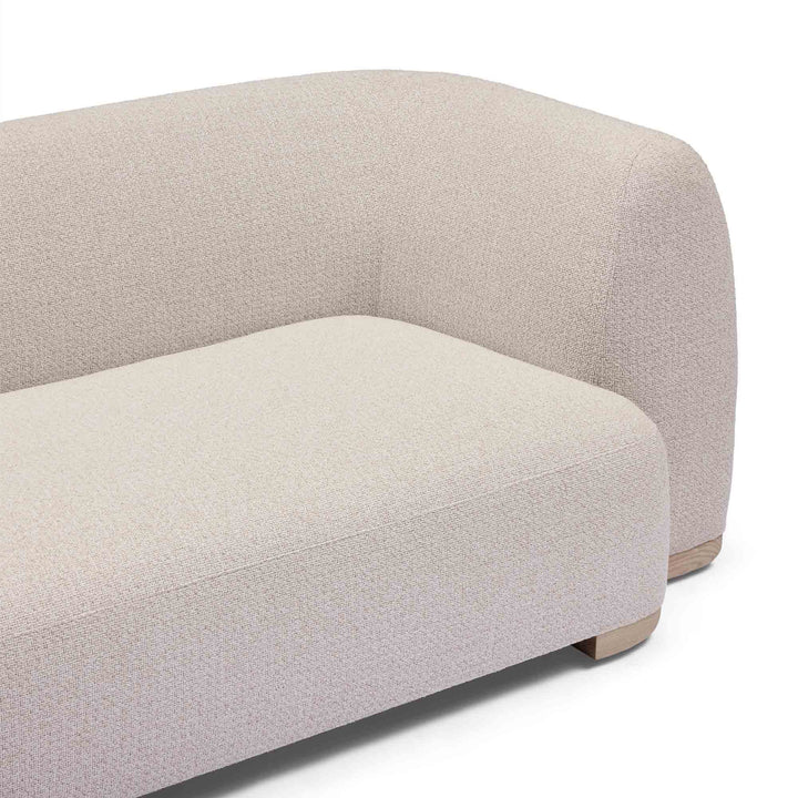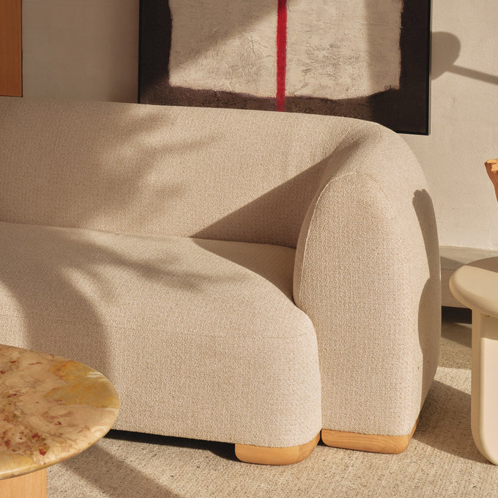The Faro 2.5-Seater Sofa is a perfect balance of elegance, comfort, and expert craftsmanship. Resting on a sleek blonde ash wood base and feet, its gracefully curved silhouette creates a sheltering arc from arm to back, offering both style and support. Upholstered in soft, textured ecru fabric, this refined piece blends seamlessly into any space, whether in the living room or bedroom. Designed for everyday lounging and entertaining, its firmer support ensures lasting comfort without compromising on sophistication. A timeless addition to your home, the Faro Sofa brings warmth, structure, and effortless glamour to your seating area.