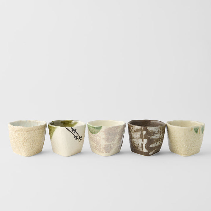 This distinctive 5-piece cup set reimagines traditional cup design with its striking triangular shape. Crafted from high-quality porcelain, each cup offers a unique and stylish way to enjoy your favorite beverages.