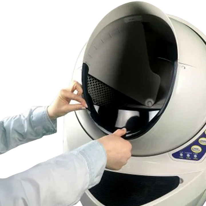 The Litter-Robot Open Air Fence is an accessory that fastens onto the bottom of the Globe entrance. It promotes your cats full entry into the Globe and acts as a barrier to contain kicked-up litter. It can also provide additional protection to the entry area.