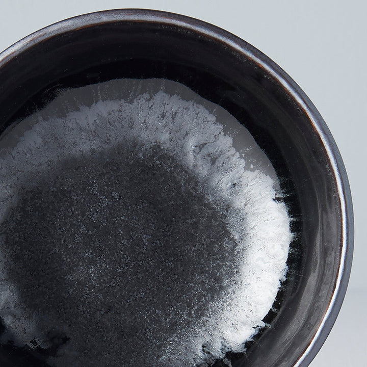The Matt and Shiny Glaze has subtle matt textures appearing across parts of the inner surface. The contrast between the glossy finish and the soft, matt areas creates a varied surface look, giving depth and character to the otherwise dark glaze.