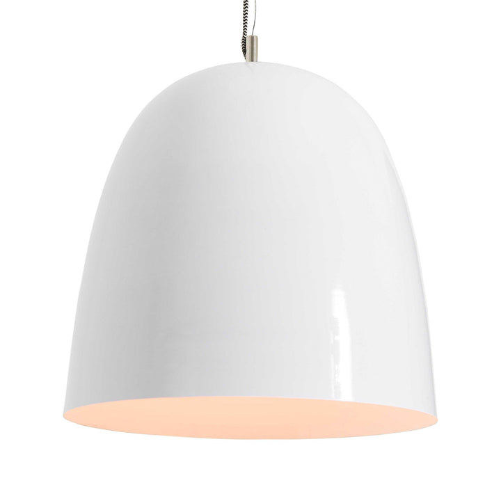 Suspended by a cable suspension cord, this Glossy White Pendant Light is a warming feature in any contemporary home or office space. Place this pendant beside a bed, clustered over an island bench or as a statement in a corner of a room. Uses E27 Max 40W globe - not includedDIMENSIONS Height: 34 cm Diameter: 35 cm SPECIFICATIONS Uses E27 Max 40W globe - not included Please see our Care Instructions below and if in doubt, always seek the advice of a professional.