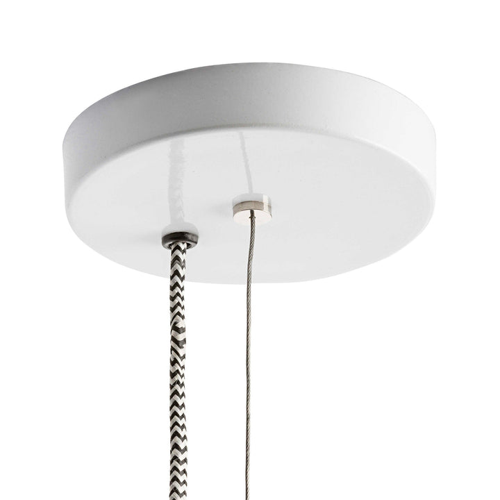 Suspended by a cable suspension cord, this Glossy White Pendant Light is a warming feature in any contemporary home or office space. Place this pendant beside a bed, clustered over an island bench or as a statement in a corner of a room. Uses E27 Max 40W globe - not included
