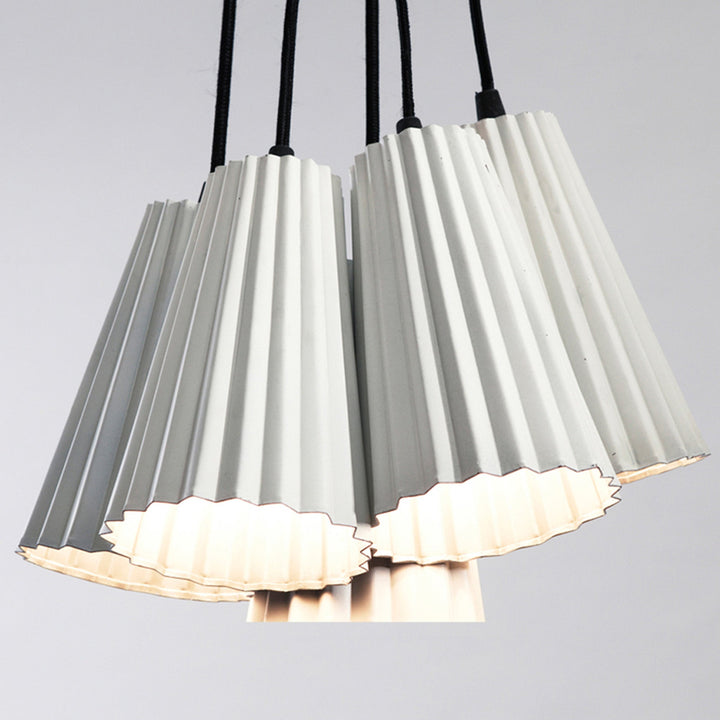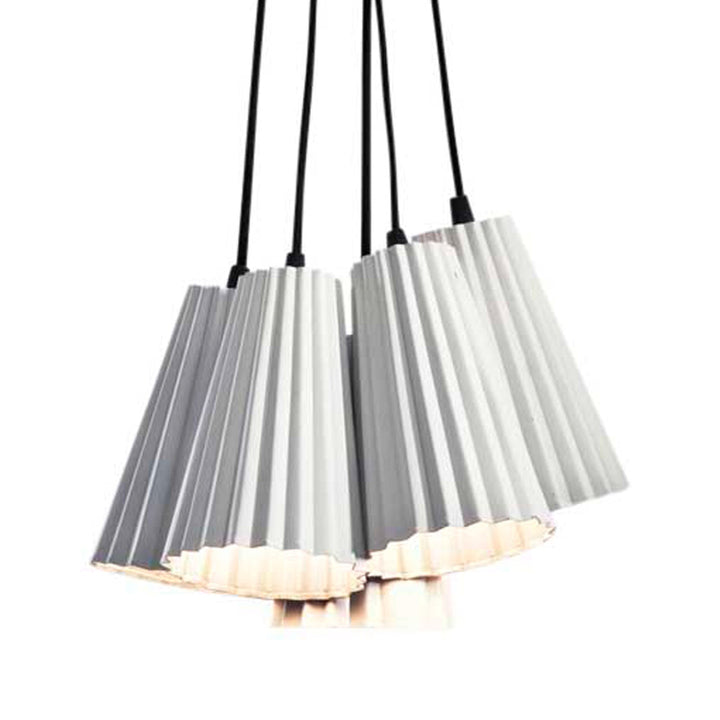 These on trend Cluster Pendants are made from metal and have a white painted exterior and a silver interior. Perfectly suited to a modern or classic setting and a neutral or monochrome colour scheme. Includes ceiling rose. Cord length 140 cm. Uses 5 x E14 max 40W globes (not included). PLEASE NOTE: The cords are white - Not Black as pictured.