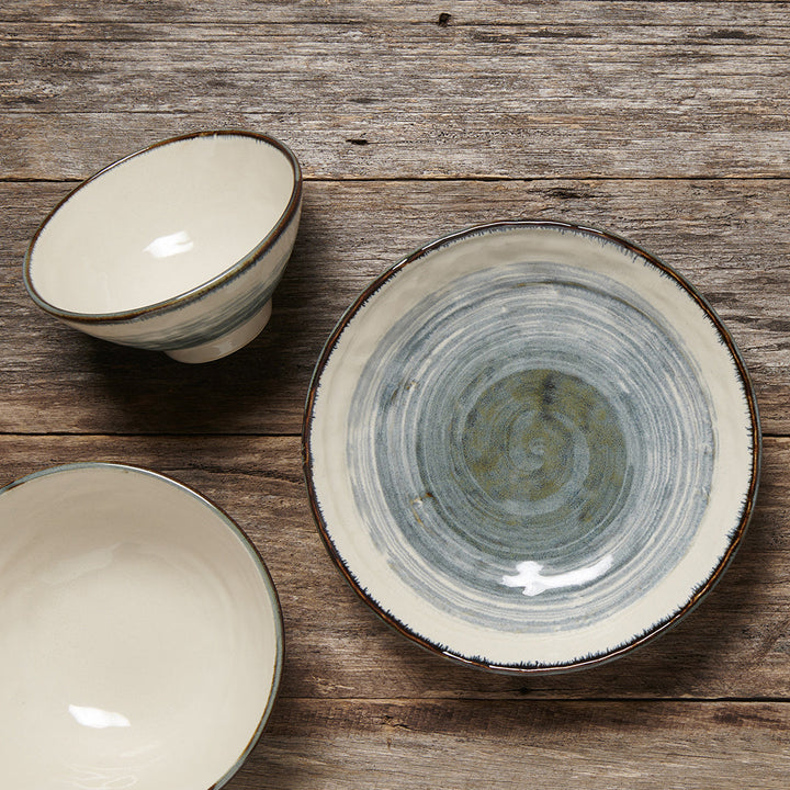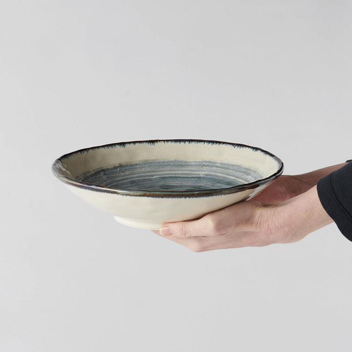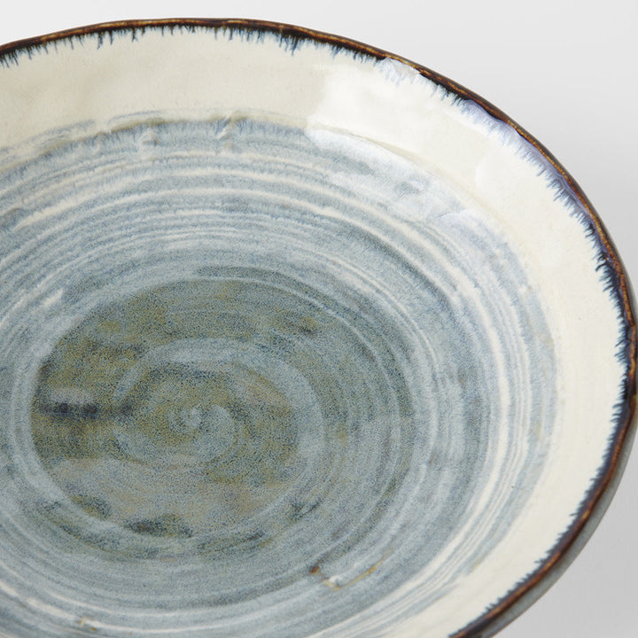 A dependable 24cm serving piece that feels just as at home during weekday dinners as it does when you're entertaining. Glacier glaze has a smooth, semi-gloss finish with soft tones of cream and grey-green. Circular rings create a layered, flowing look that gives the surface a calm, natural feel. Slight irregularities in size, glaze and texture reflect the artisan nature of the product and are embraced. 700 ml