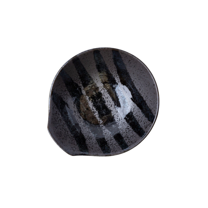 Bowl with Handle 13cm Black Stripes On Gunmetal Glaze